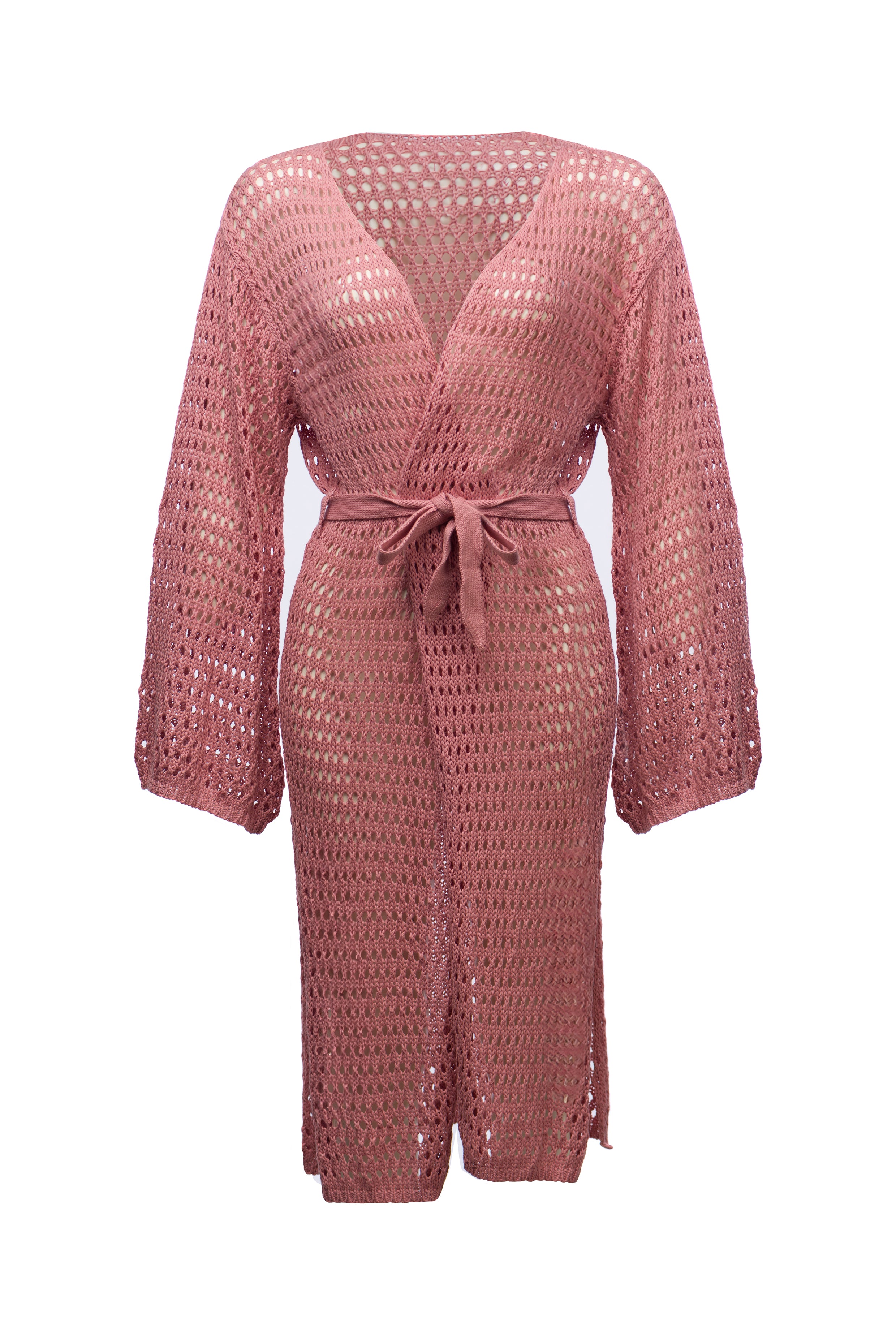 Elevate your wardrobe with this versatile piece that transcends seasons and occasions with ease. The timeless kimono design is reimagined with modern flair, featuring intricate knit detailing and a figure-flattering waist tie that cinches in the silhouette for a refined look. Whether worn as a standalone statement piece or layered over your favorite ensemble, this dress knit kimono exudes effortless chic and understated glamour, making it a must-have addition to any fashion-forward wardrobe.